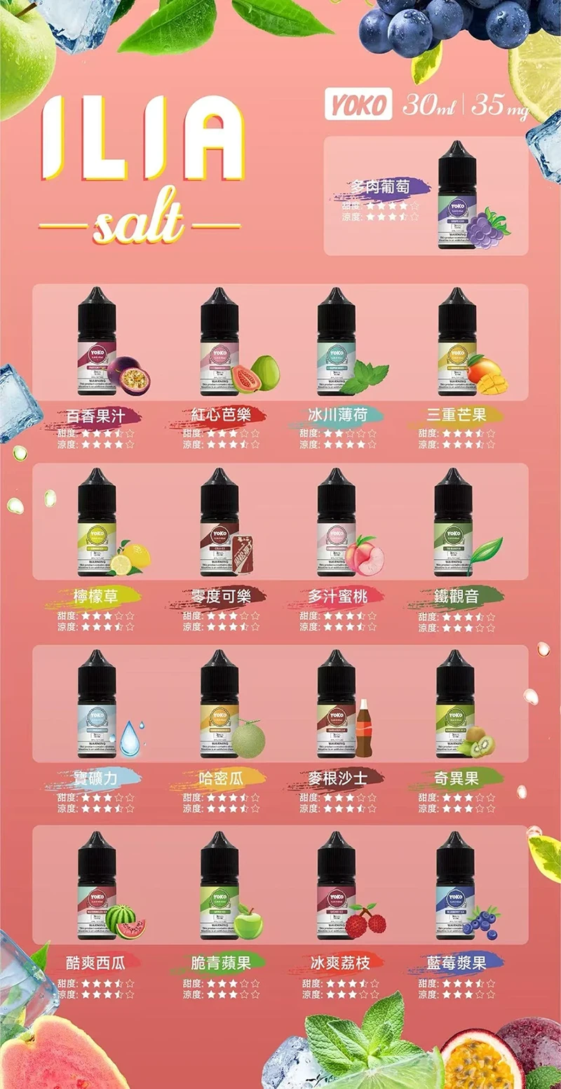 全新推出ILIA 哩亞煙油系列,17種口味豐富選擇,無論您是喜歡鮮甜水果、飲料還是茶味,哩亞煙油都能滿足你。精心製作每一滴,都是採用最優質的煙草,嚴格控制每一道工序,保證還原最原始最優質的口感。